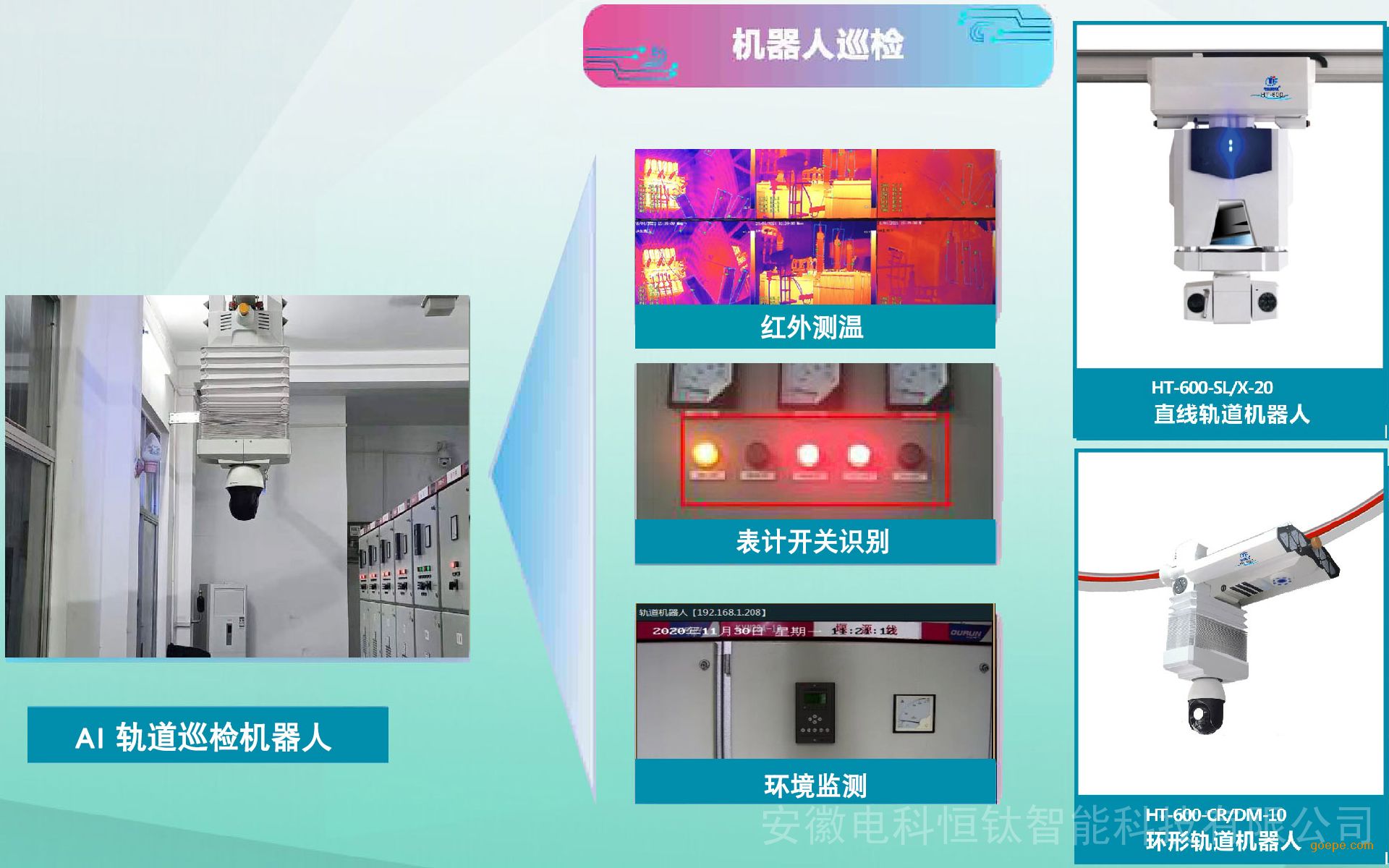 HT-600 是专注变配站场所(变电站、开闭所和配电室等)、以智能控制和AI为核心技术,全面提升变配电站智能化水平而研发的一款多功能新型室内巡检机器人。